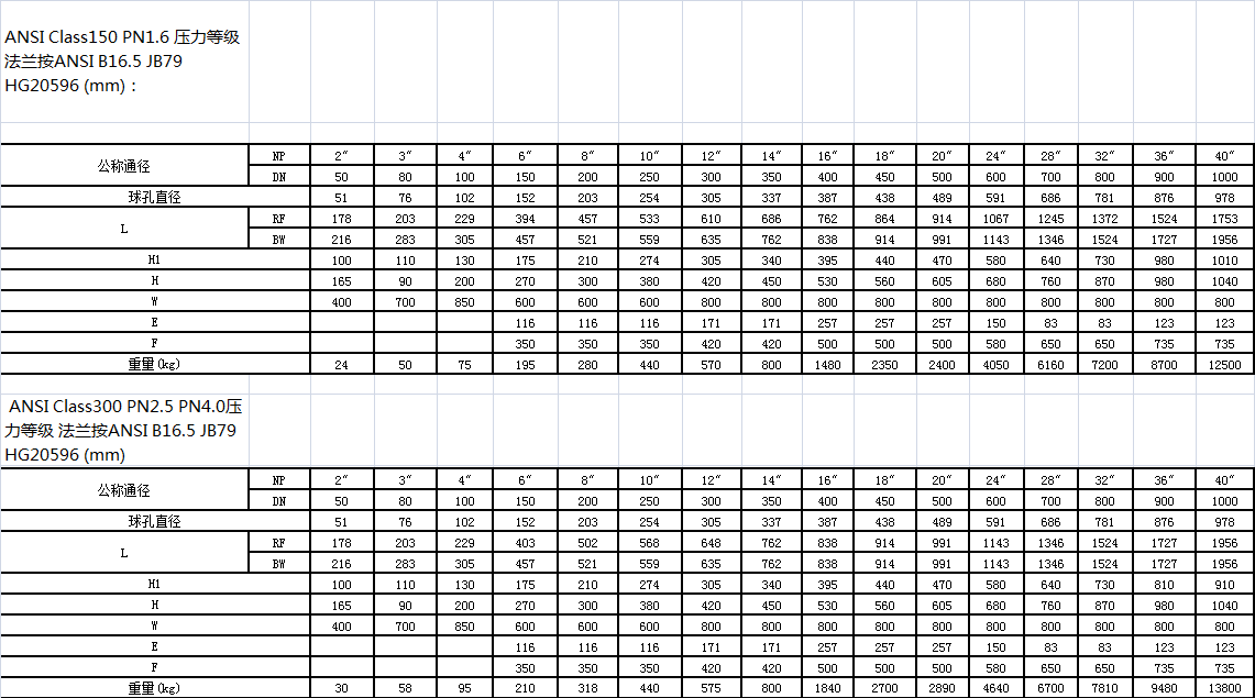 壓力等級:150~600LB,1.6MPa~ 4.0MPa