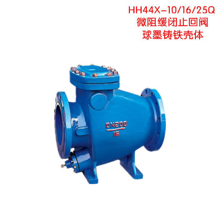 【HH44X微阻緩閉靜音止回閥】應(yīng)廣大客戶要求有鑄鐵、鑄鋼材質(zhì)。 【產(chǎn)品的用途及特點(diǎn)】: HH44X微阻緩閉靜音止回閥主要用于給排水管道,安裝在水泵出口處用來防止介質(zhì)的逆流和消除破壞性水錘,并能有效地減少閥門關(guān)閉水錘壓力,可保障管網(wǎng)安全運(yùn)行;并具有下列特性: 1、 閥板輕、開度大、局部流體阻力小、節(jié)電效果顯著。 2、 設(shè)計(jì)合理、性能穩(wěn)定可靠的油壓消除水錘機(jī)構(gòu)設(shè)計(jì)新穎。 3、 密封性能好,防逆止囗與逆止閥板之間為橡膠軟密封。 4、 運(yùn)行平穩(wěn)、無震動(dòng)、無噪音、安全無故障。 5、 耐磨損、使用壽命長、維修費(fèi)用低。 HH44X微組緩閉式止回閥符合現(xiàn)行國家標(biāo)準(zhǔn),結(jié)構(gòu)長度按GB-12221-90,法蘭連接尺寸按GB4216.1~4216.10&mdash;84的規(guī)定制造。
